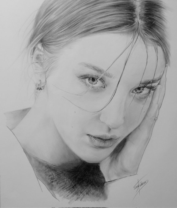 海外のモデルさんを描いてみました♪ 韓国で活躍中のAngelina Danilovaさん、とっても とっても美しい😍 #angelinadanilova #Pencildrawing #鉛筆画