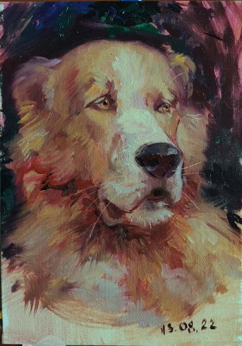 Well, I decided to participate in #doggust2022 #doggust and at the same time practice oilpainting. This one took 1.5hour alla prima painting! My plan is to spend 1.5 hour for each of them :D #oilpainting #animal #animalpainting #centralasianshepherd