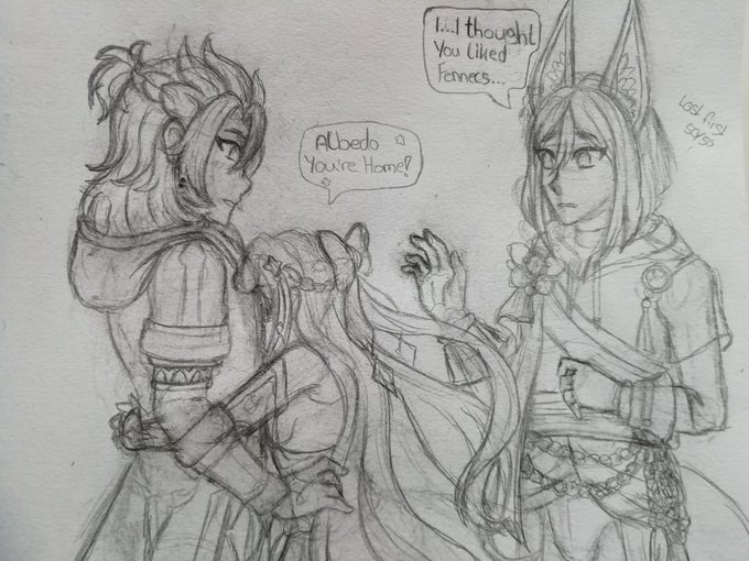 #Tighnari made me lose my 50/50 at first..and 120 pulls later, #Albedo finally came home. This is probably an accurate representation. ✨ #anime_style #sketch #genshinoc #Genshinlmpact #genshinimpactfanart #sketchart