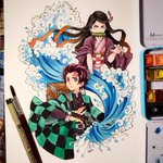 Watercolor fanart of a manga I really loved. And the anime was stunning btw. . #kimetsunoyaiba #kimetsunoyaibafanart #tanjirokamado #tanjiro #nezuko #nezukokamado #animefanart #anime #animegirl #manga #mangafanart #mangaart #AnimeArt #watercolorpainting #watercolorart