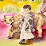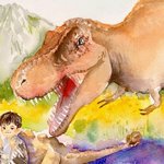 依頼主の息子さんの大好きな ティラノサウルス、 アンキロサウルス、 プテラノドン そして息子さんご本人を 透明水彩で描きました🖌 I painted his favorite dinosaur, #Tyrannosaurus, #Ankylosaurus, and #pteranodon by #watercolor. #透明水彩 #ホルベイン #恐竜 #イラスト
