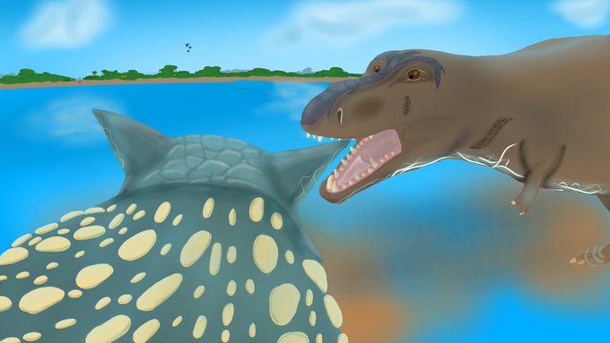 O combate Um #Ankylosaurus se encontrando com um #Tyrannosaurus com marcas de lutas passadas com outro gigante da Hell Creek. #paleontology #Paleoart #art
