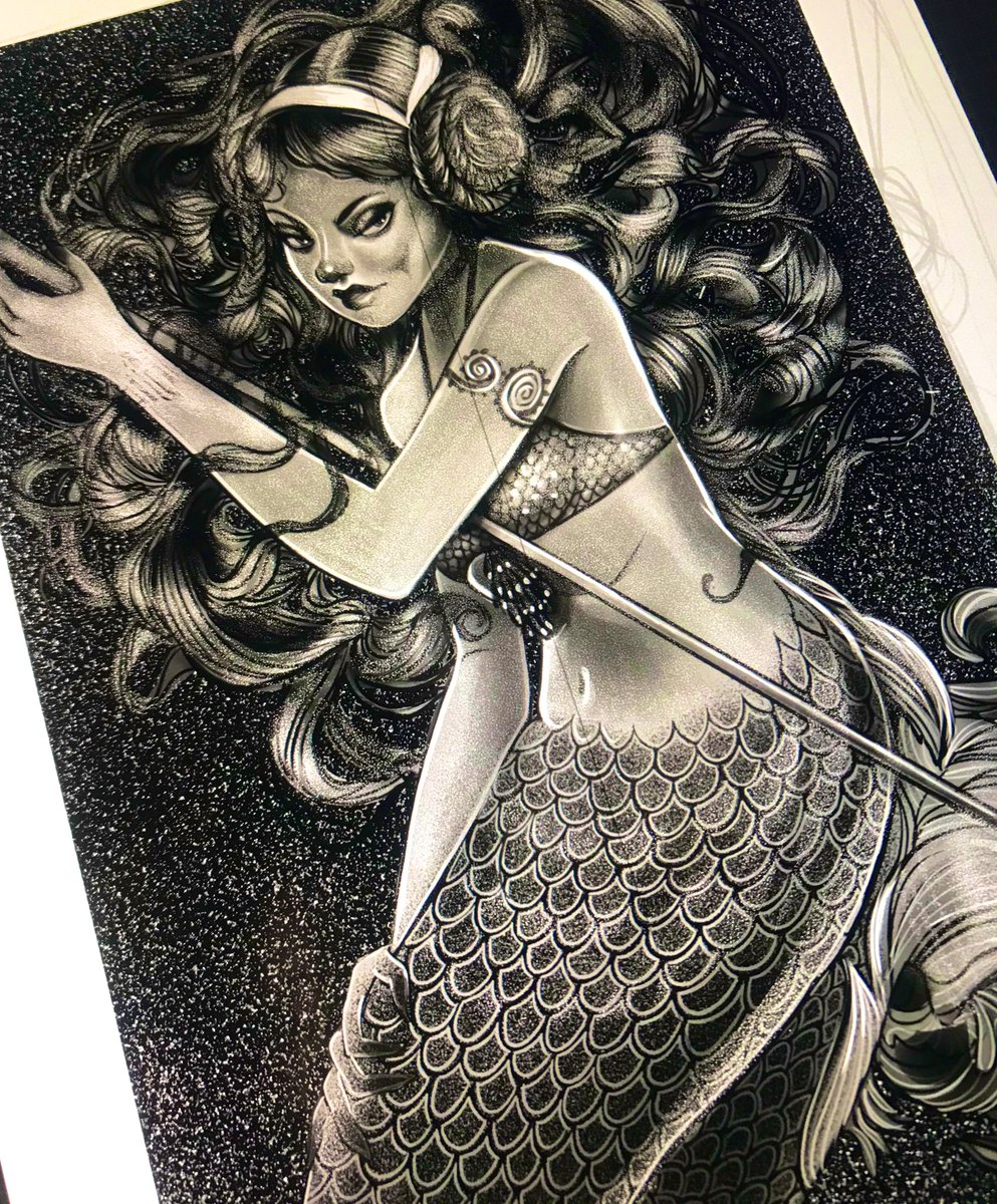 Going backwards…doing the background today #NoirMerMay #vintagemermaid #mermay #mermaid #annettekellerman