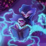 The initial rough concept and the final design for one of the illustrations I did for the @dork_studios upcoming musical, Anthony and Beast. AU by @jigokuhana89 Director - @disneydork1928 #HelluvaBossFanart #HelluvaBossStolas #HelluvaBossOctavia #anthonyandbeast #artofrhues