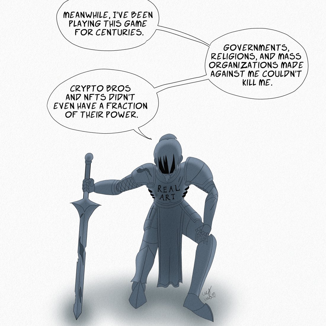 To all my artist friends, never give up. AI art may plague Social Media, but it'll never win. Art has survived as long as humans have and there is no reason it should be handed off to robots. #artistsontwitter #AntiAIArt