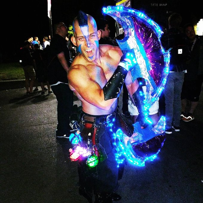 Flashback of my #dota2 #cosplay during #dota2international as #antimage rocking his mohawk and glaves! One of my fav - tell @satinephoenix and me some of your favorite cosplay and/or any cosplay suggestions for us! 💙🤘 #cosplayer #cosplayboy #gamer #dnd #rpg #ttrpg #larp