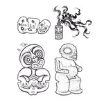 5 octobre : Tiki À gauche : deux pendentifs Hei Tiki en néphrite, Maori, Aotearoa. À droite : deux représentants de Tiki des îles Marquises, un Ivi po’o en os et cheveux et une sculpture en pierre poreuse. #Pacifinktober #inktober #inktober2021 #maori #aotearoa #tiki #marquises