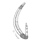 23 octobre : Hameçon / Fish hook Hameçon d’Aotearoa (Nouvelle-Zélande) appelé Pā kahawai, en os de baleine incrusté de marqueterie de nacre, avec une pointe d’hameçon en pierre verte néphrite. #maori #aotearoa #newzealand #tepapatongarewa #pacifinktober #inktober #inktober2021