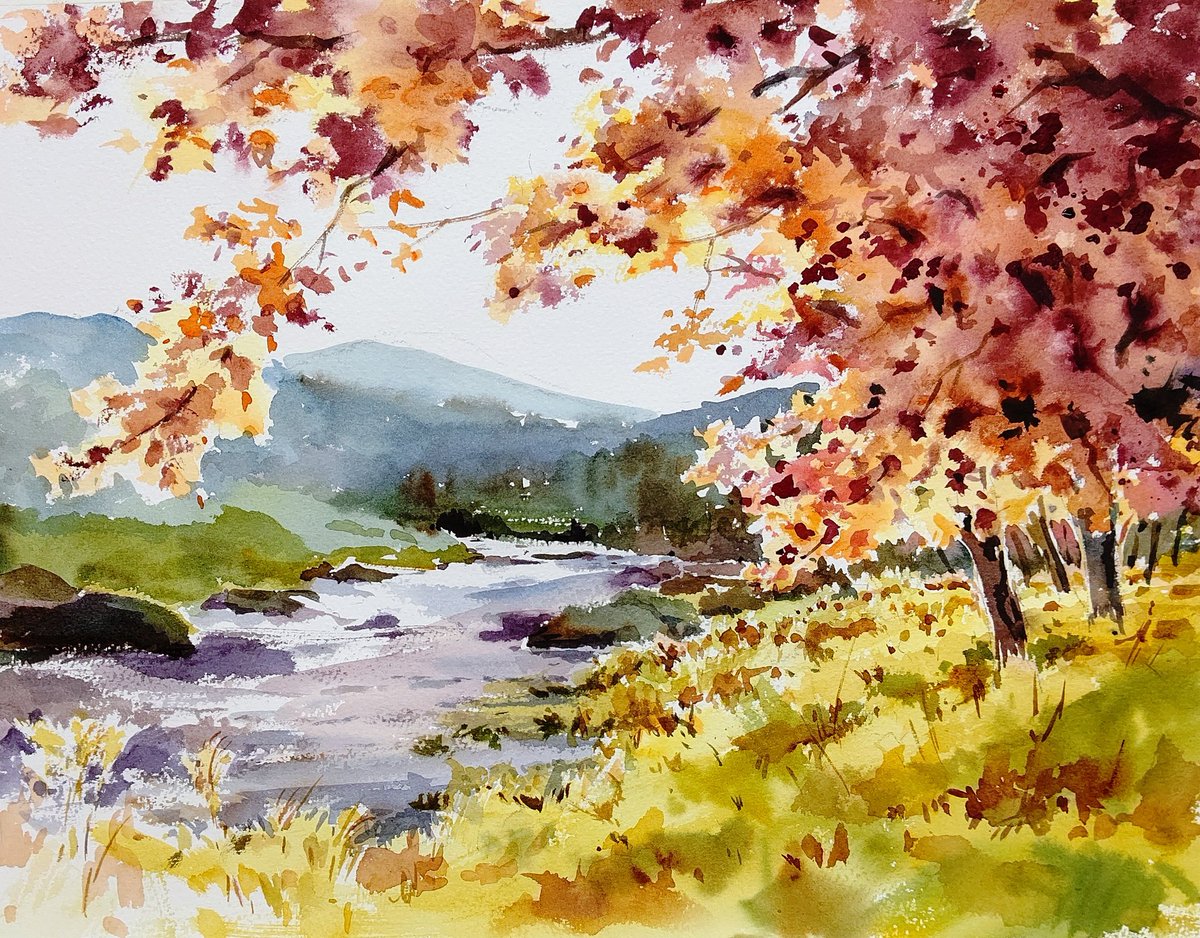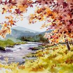 秋の風景を先取りして教室で描きました。待ち遠しい季節です。#透明水彩画 #水彩画 #スケッチ #秋の風景 #黄葉 #watercolour #watercolor #landscapepainting #sketch #Autumn #aqurelle #aqurellepainting