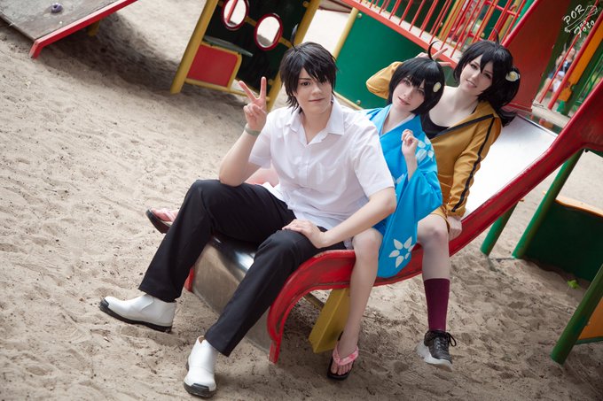 Happy family photo ~! Instagrams: Karen - Miko.Cosplay Arararagi - Ako_cosplay_ Tsukihi me Photo by Karuta1612 #cosplay #monogatari #araragi #Karen #tsukiart #anime #lolitagirls