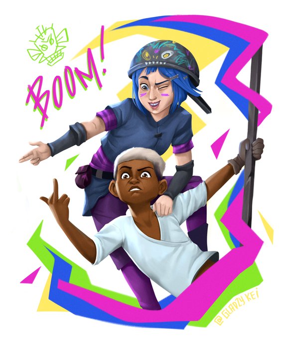 Here's the finished painting of Powder and Ekko! @arcaneshow Painted on Ipad Pro using @Procreate Finished on my computer with @HuionTab and Photoshop #Arcane #arcanepowder #ekko #LeagueOfLegends #fanart