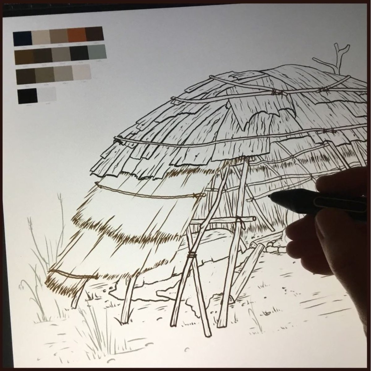 Design for a Mesolithic hut. #arch_illu #fridaymotivation #archaeologicalillustrations #drawingoftheday #archaeologylover #archaeologicalsite #Archaeology #digitalart