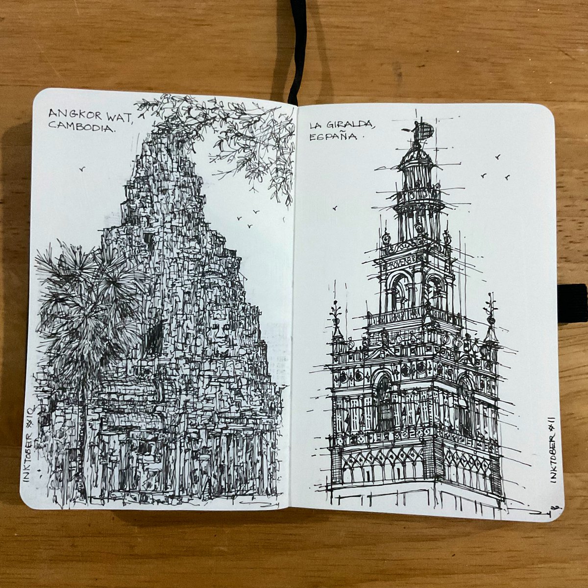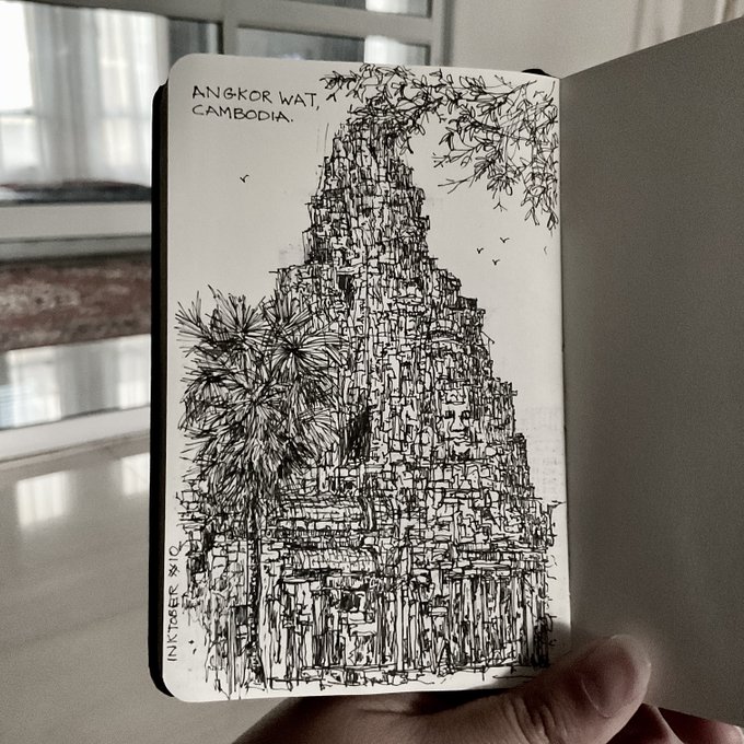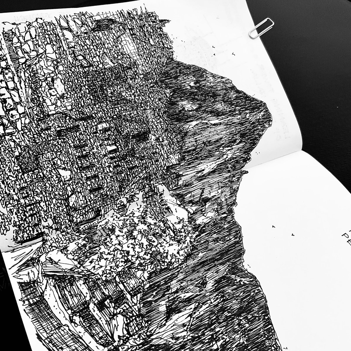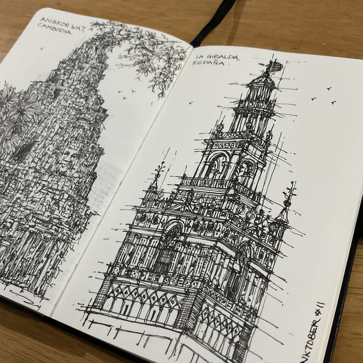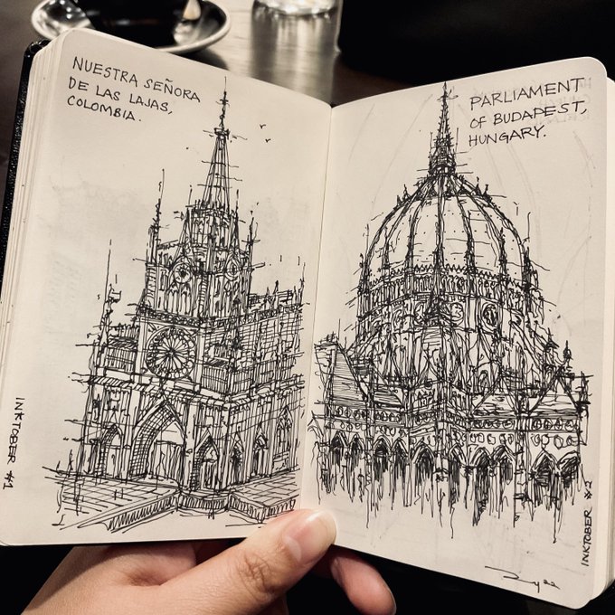 Empezando el reto de este año. Parece que me falta practicar anatomía para dibujo, peor bueno. El tema de hoy: Gárgola. #inktober #inktober2022 #architober #architober2022 #inktober1 #day1 #diauno #gargoyle #Gárgola #ink #dipnib #standargraphink #inktobermexico #sepiaink