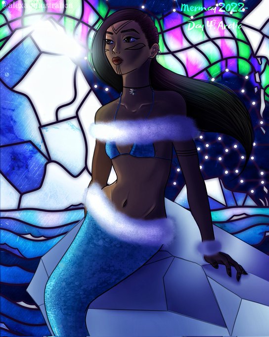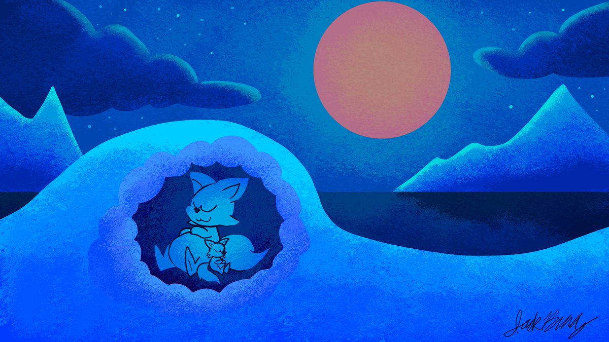 Lost in the Sapphire Mountains #landscape #mountainscape #mountain #winter #arctic #midnightsun #arcticfox #fox #digitalart