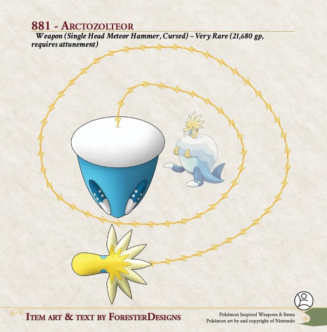 My #DnD #Pokemon #MagicItem of the Day, with an #Arctozolt #meteorhammer that can leave you and your enemies frozen in their tracts! Become a Patron to get the full collection and more at buff.ly/3afHNwh #DnD5e #DnDItems #DnDHomebrew #Nintendo #TTRPG #DnDArt #5e #5eItems