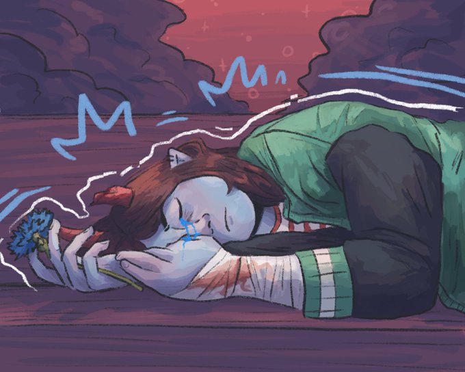 "there they lay, alone again, a mere flower for quiet comfort" i got commissioned by aimsey to draw this parallel to the au!guqqie drawing I did a bit ago :)) zoomies and stuff in the replies <3 [#aimseyfanart #areaunknownfanart]