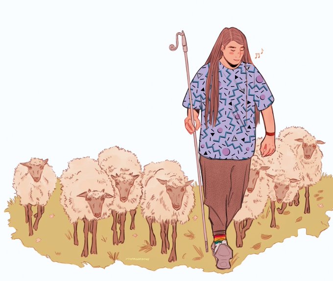 shepherd argyle based on a guy i saw on the side of the railroad track with super long hair, funky blue shirt and a huge wooden staff #argyle #StrangerThings
