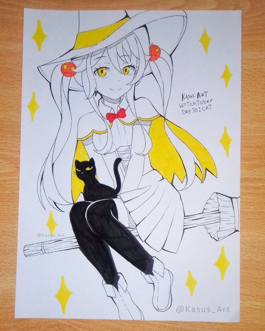 🎃♧Witchtober Día 30♧🎃 "CAT" Un poco tarde pero pude acabarlo (ㆆᴗㆆ) 🐱 . . 「 #witchtober #ariaillutober2021 #BlackCat #witch #Inktober #inktober2021 #drawtober #traditionalart #Dia30 #Halloween #halloween2021 」