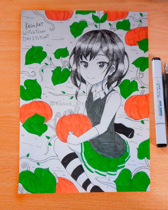 🎃♧Witchtober Día 27♧🎃 "Plant / Planta" It's pumpkin season! 🎃🎃 . . 「 #witchtober #ariaillutober2021 #plant #pumpkin #witch #Inktober #inktober2021 #drawtober #traditionalart #Dia27 #Halloween #halloween2021 」