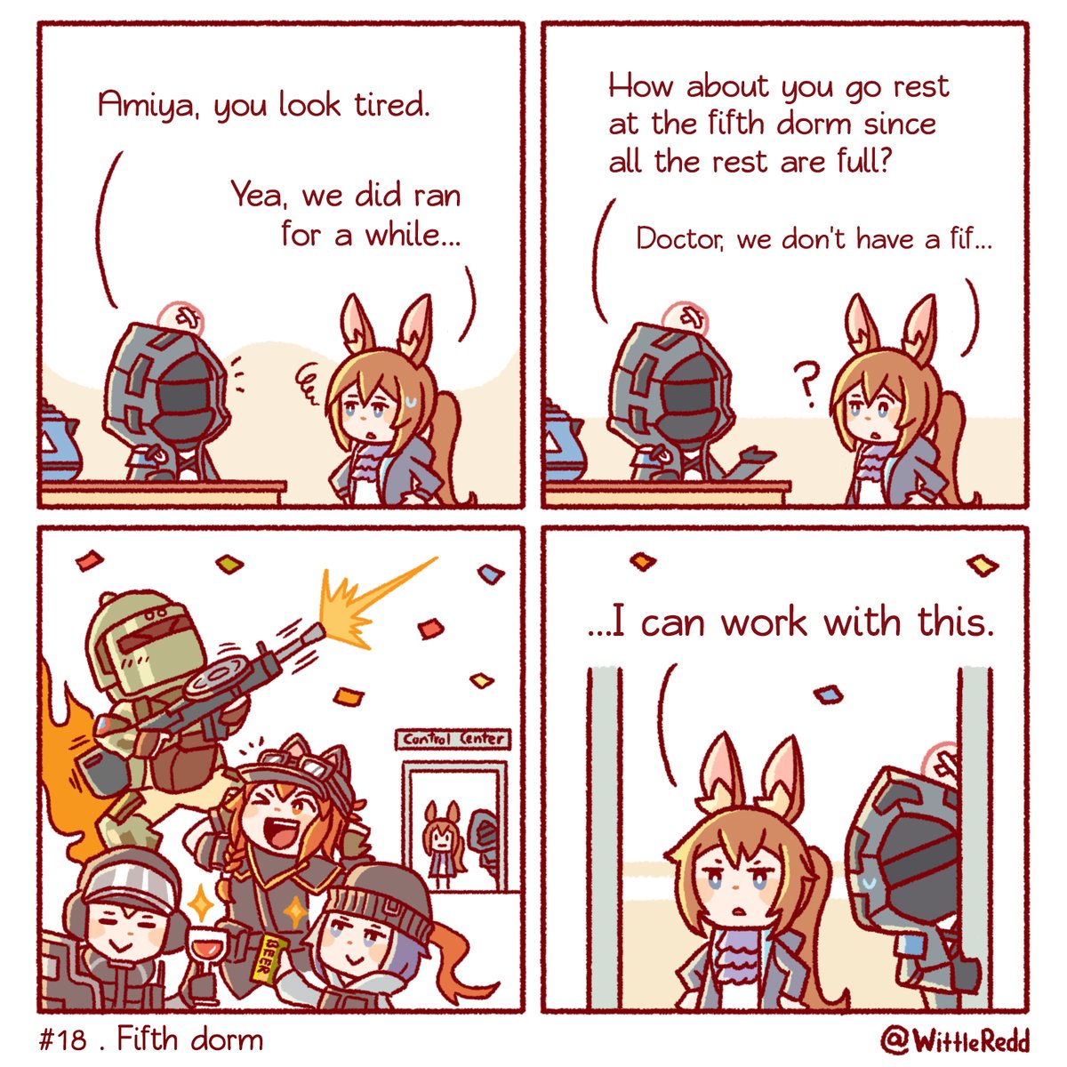 They changed the dorm.🤕 A bit late about this but thanks for 2000 followers! 🎉 . . #wittlered #arknights #arknightsfanart #arknightsamiya #arknightsdoctor #arknightsdurin #doktah #arknightscomic #arknightsmemes