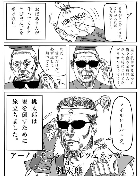 妄想キャスティングパロディ漫画009 1日1ページ更新が目標 #漫画が読めるハッシュタグ #アーノルドシュワルツェネッガー #arnoldschwarzenegger やっと旅立ちました。 サングラス最高!