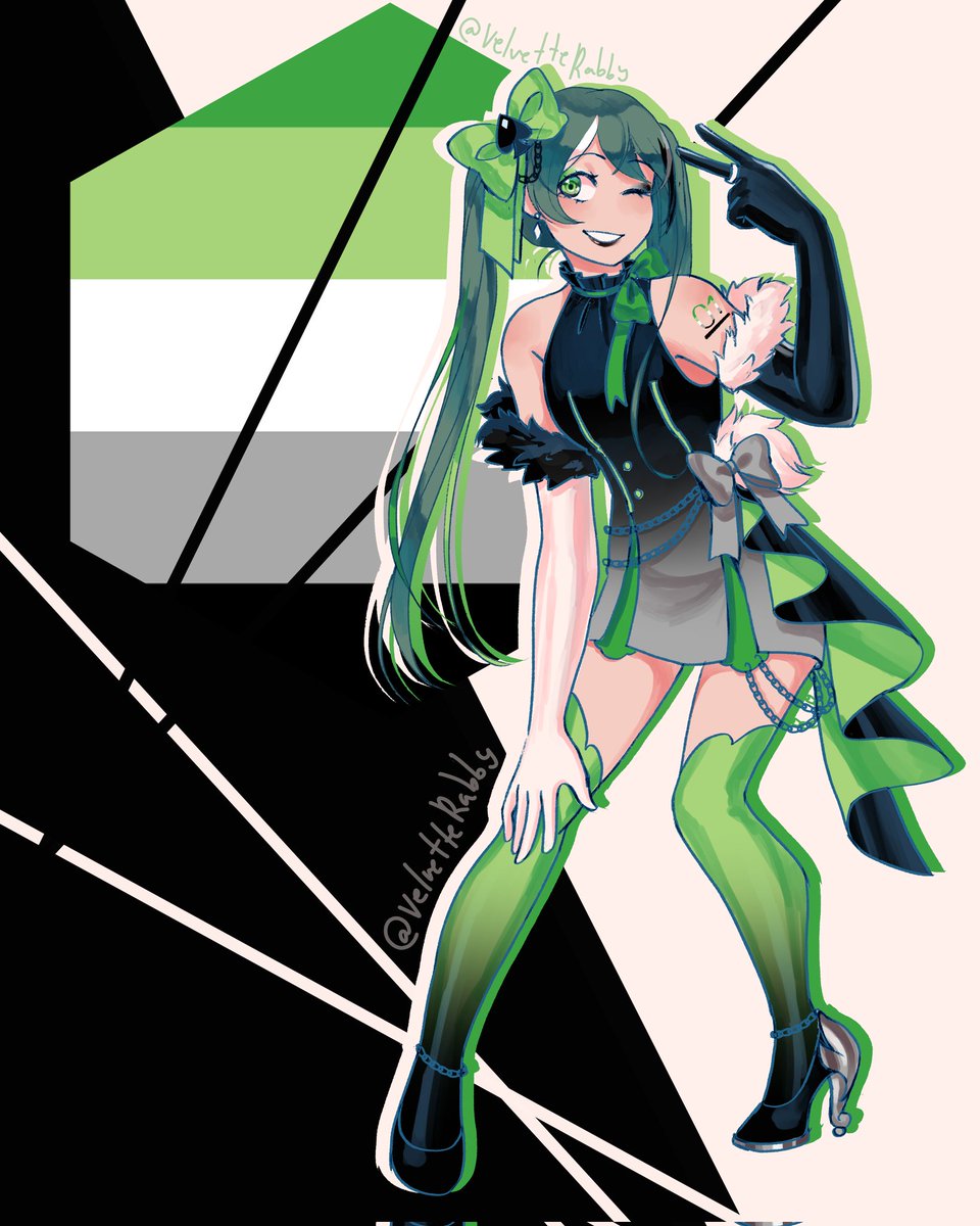 💚🖤💜 happy ace/aro pride !! #AcePride #aromantic #aromanticvisibilityday #asexualpride #HatsuneMiku #MikuMonday #MIKUEXPORewind