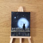 Today’s finished miniature painting #art #artist #illustrator #cat #moon #buyart #artforsale #artbytheartist