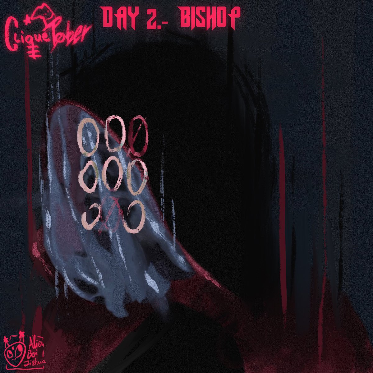 Day 2.- Bishop |-/ @twentyonepilots • @artbytheclique #cliquetober #artbythecliquetober • #cliqueart #twentyonepilots #scaledandicy #inktober #tøp #tylerjoseph #joshdun #procreate #artbytheclique #skeletonclique