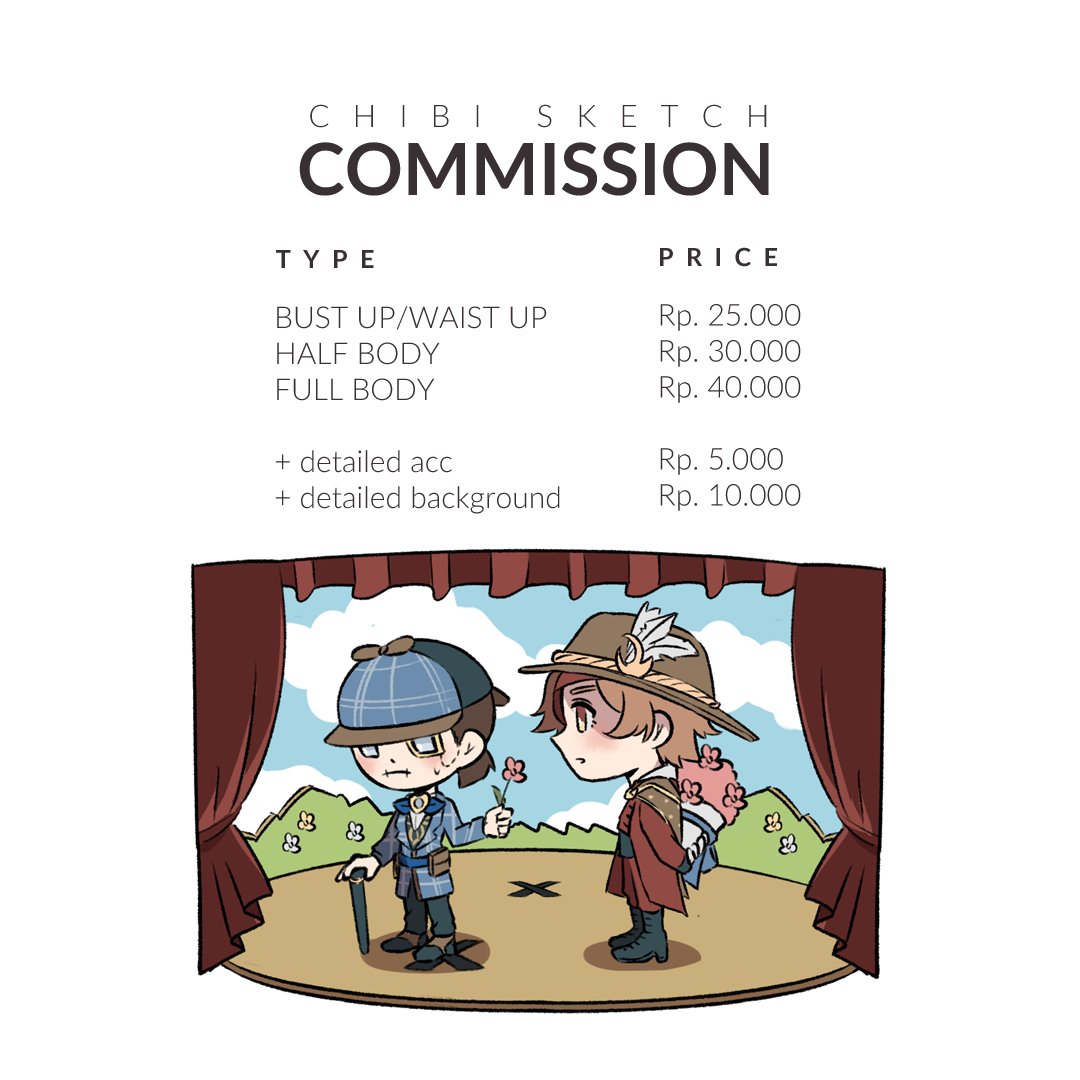updated price anime style and chibi sketch #commissionopen IDR only, PM for USD. #artistsontwitter #artcommision #artistofindonesia #commission #genshinimpactfanart #idvfanart #oc