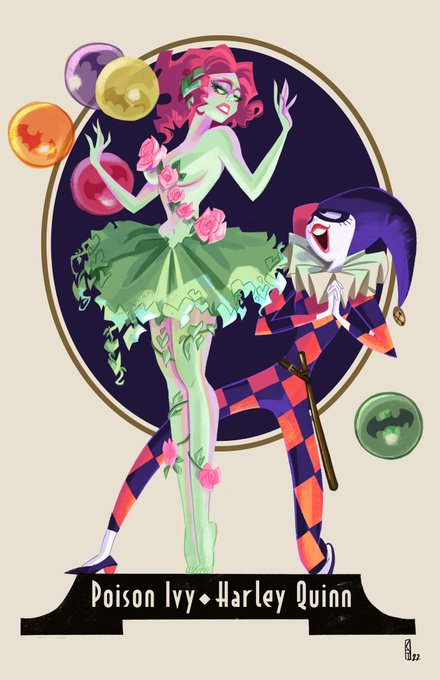 Happy New Year! First art of 2022. Hope it’s a great one. #harleyquinn and #poisonivy after #jcleyendecker #batman #happynewyear #artdecostyle