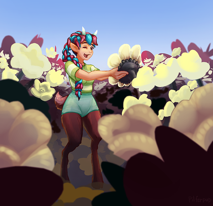 "Artfight Attack 6!" For NoteTabby! Been having fun creating all these scenes for everyone's characters! Artfight is a really fun time to be an artist. #Artfight2022 #ArtFightTeamWither #artfightattack #artfight22 #satyr #illustrationart #flower