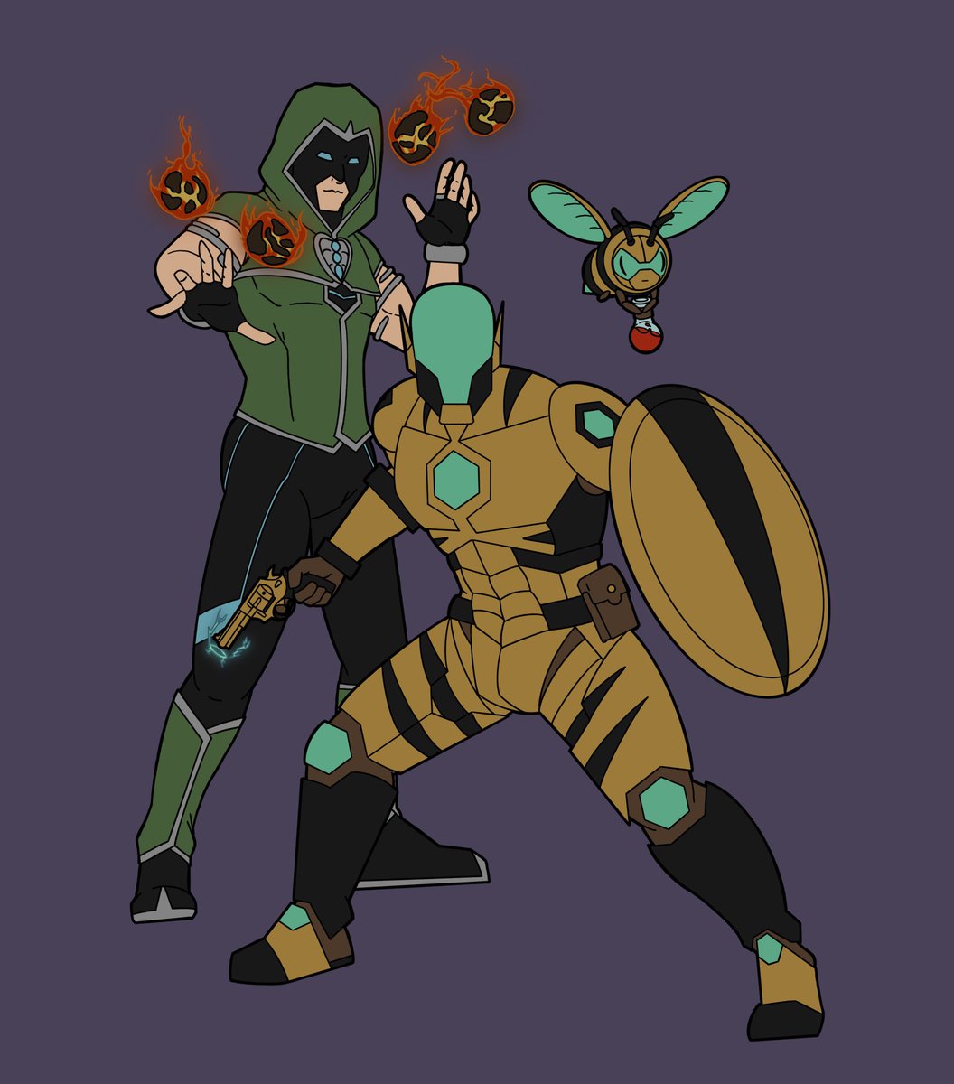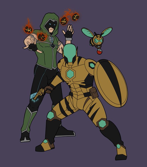 The Lineart of Tyson, Kellan and Buzz love how this is coming out!! #dnd #dndart #ocs #artificer #sorcerer #bee #wasp #superheroes #superhero