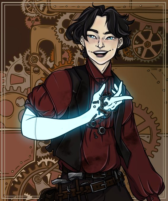 Drew my mates artificer, Axel, and I honestly love this bastard man so much 💜 #pathfinderrpg #artificer #dndart