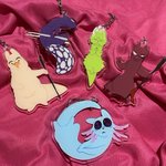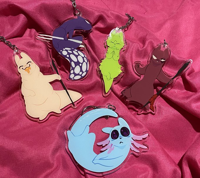 Downpour slugcat keychains !! They’ll b available on Etsy soon :] Closeups in replies but I’ll b getting better images for them #Rainworld #rainworlddownpour #rainworldfanart #gourmand #artificer #rivulet #spearmaster #saint