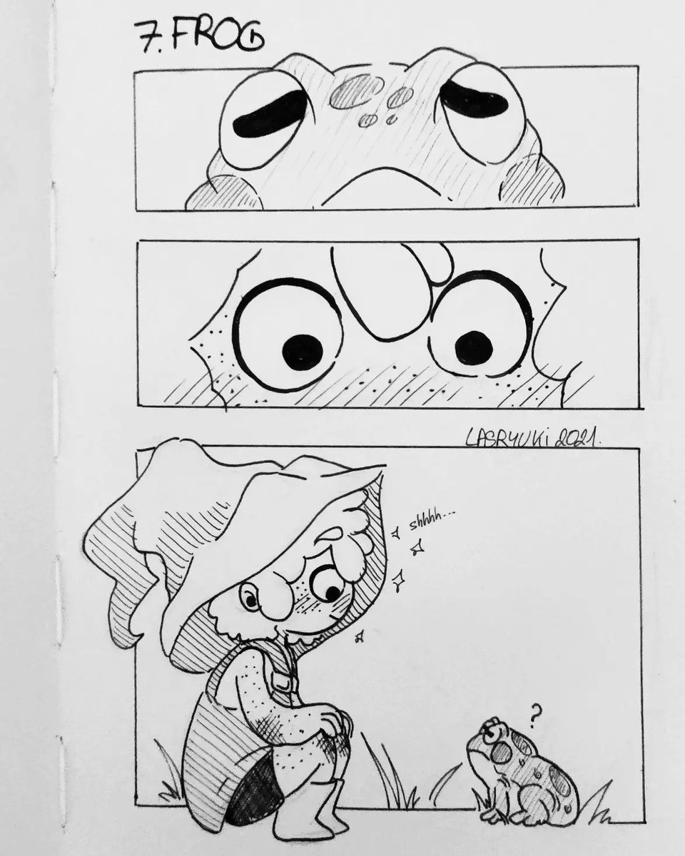 Day 7 : Frog Première rencontre avec une grenouille 👀 #inktober #ink #inktober2021 #inktoberday6 #apple #art #artwork #artworks #oc #artink #artistoninstagram #drawing #inkdrawing #comicstrip