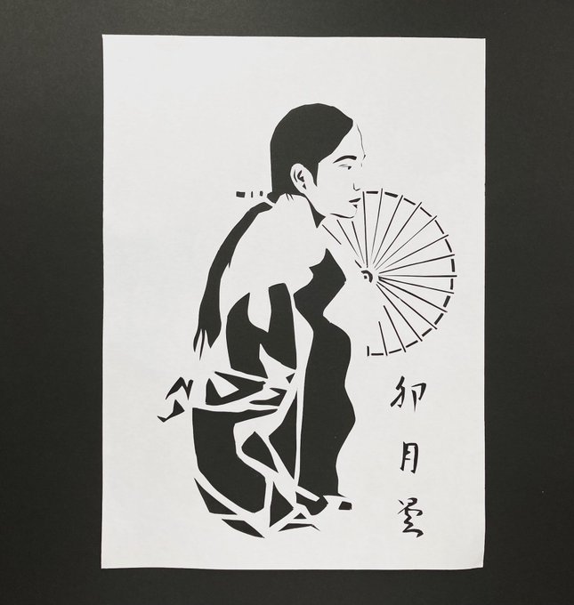 卯月曇 Kirie(paper cutting) : Satoshi Shimoguri artist model: Anna Uchiyama #papercutting #Kirie #design #Miko #ContemporaryArt #AnnaUchiyama #SatoshiShimoguri #illustration #artistmodel #kanji #calligraphy #イラスト #デザイン #卯月曇 #書 #切り絵 #巫女 #卯月 #季語 #五月