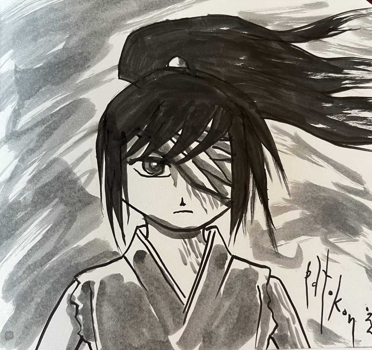 Starting another art challenge this month! Check it out on Instagram if you are so inclined! Instagram.com/patokon #artober #artober2022 #artoberday1 #artistober #inktober #inktober2022 #inktoberday1 #art #ink #dailysketch #brushpen #comics #manga #ninja #sanpeishirato