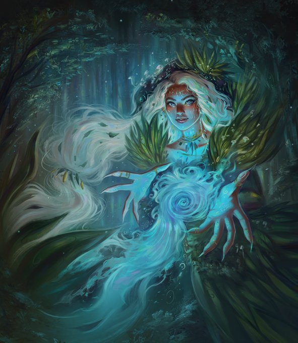 When moonlight meet the ocean — Moon and Ocean Deities design from few years ago and I still love them✨ — #chilumi #タル蛍 #genshinimpact #rkgk #artistontwt