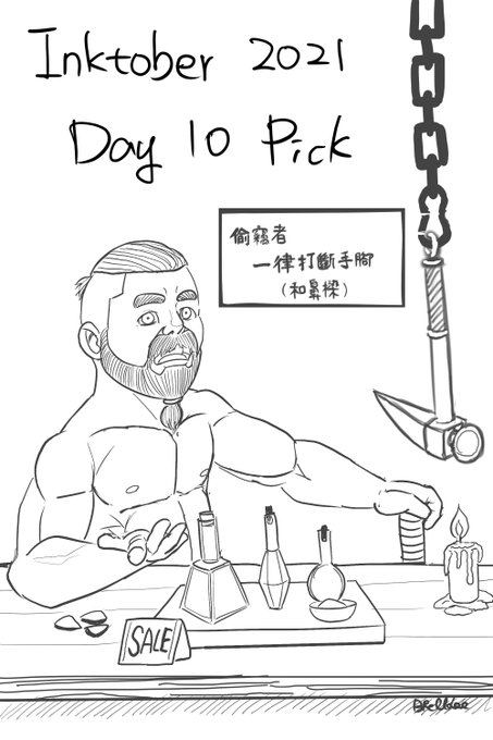 Day 10 Pick Don't try to steal or you will face the consequence. Including your broken nose bridge. #inktober2021 #inktober #illustration #イラスト #art #artisuld16 #dwarf #ドワーフ