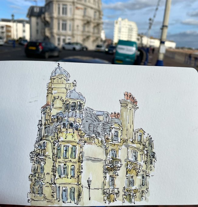 We rode down to Eastbourne for some chips. #Eastbourne #Sussex #architecture #illustration #art #sketch #moleskine #watercolour #artjournal #sketchbook