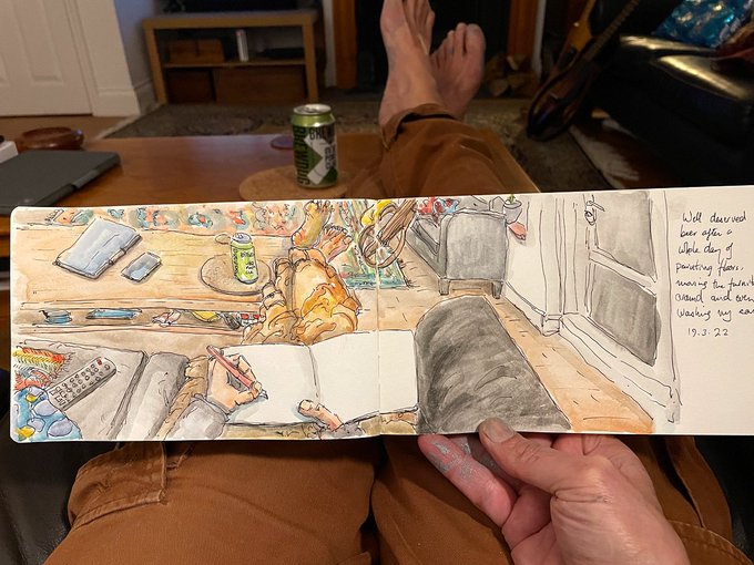 A well deserved beer after a busy day. #sketch #selfie #art #illustration #watercolour #artjournal
