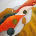 This is my painting "Closer Than You Deem". The original is for sale (please DM me if interested!) and you can find very nice prints of it here: fineartamerica.com/featured/close… #art #painting #artprints #arte #artlovers #kunst #ArtistOnTwitter #landscape #trees #hill #mountain #stripes