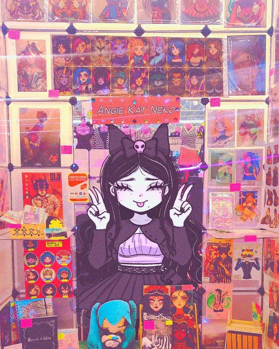So happy to be presenting at artists alleys again ٩(๑❛ᴗ❛๑)۶ @vivelaconco was very fun 💕#angiekatneko #concomicgdl #artistalley #artistalleytable #artistvspersona #artistalleyprep #artistalleyonline #artistalleybooth #artmerch #kawaii #aesthetic #y2k #gamer #art #artvsartist
