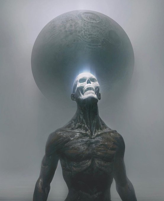 Overall this dark digital painting displays a lone ghoul guarding a lunar subject in a piece which displays a highly desolate and destitute visual experience "SO REAL” 李忆川 / g_host_lee #Art #Artist #DigitalPaint #ArtMuseum #ArtEducation #ArtMuseum #Death #Dark