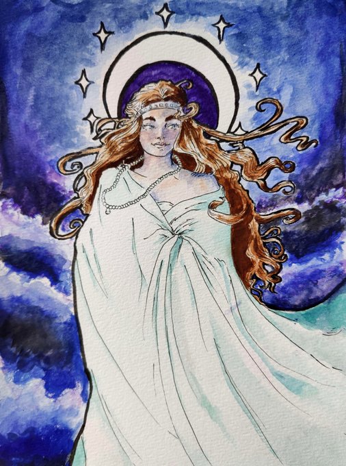 Vermeil of the Crescent Moon Watercolor on paper. #artnouveau #watercolorpainting #ArtistOnTwitter