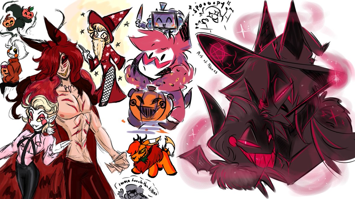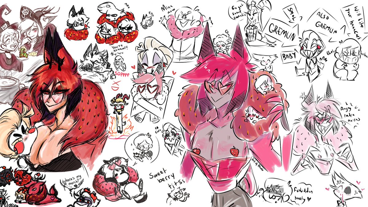 Fun little aggie doodle sesh with the fabulous @StaticAppleSin drawing their AU Berryverse Pimp Al and all his little gremlins...I mean followers ;) #HazbinHotelfanart #HazbinHotelAlastor #HazbinHoteLucifer #HazbinHotelAngelDust #artofrhues