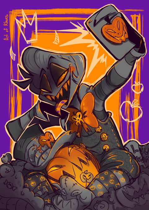 🎃 All hail the pumpkin king 🎃 Spoopy doodle for the glorious @StaticAppleSin of everyone's favourite apple lad ;) #HazbinHotelFanart #HazbinHotelLucifer #artofrhues