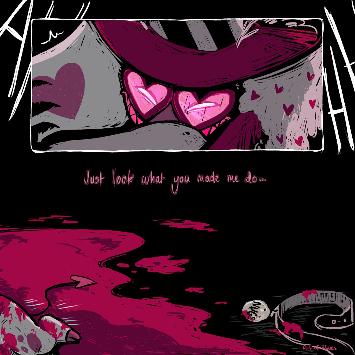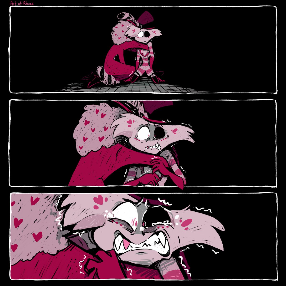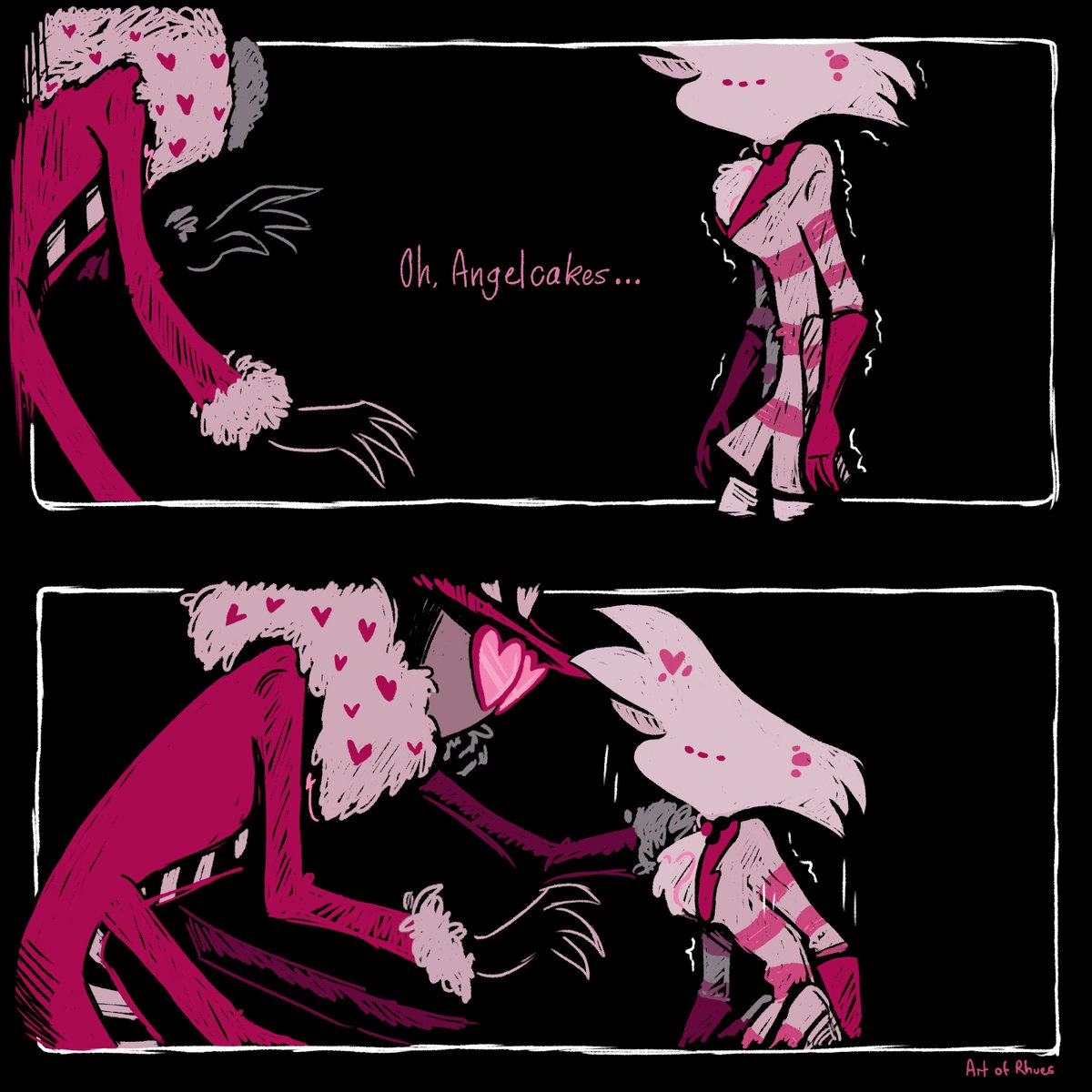 Oh, Angelcakes... (Part 1) - Please heed the content/trigger warnings. - CW/TW - Murder, animal/pet death, emotional abuse, emotional manipulation, gaslighting, blood. - #HazbinHotelfanart #HazbinHotelAngelDust #HazbinHotelValentino #artofrhues
