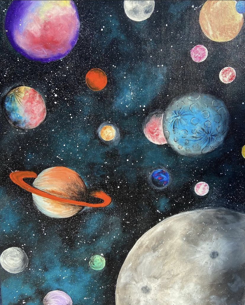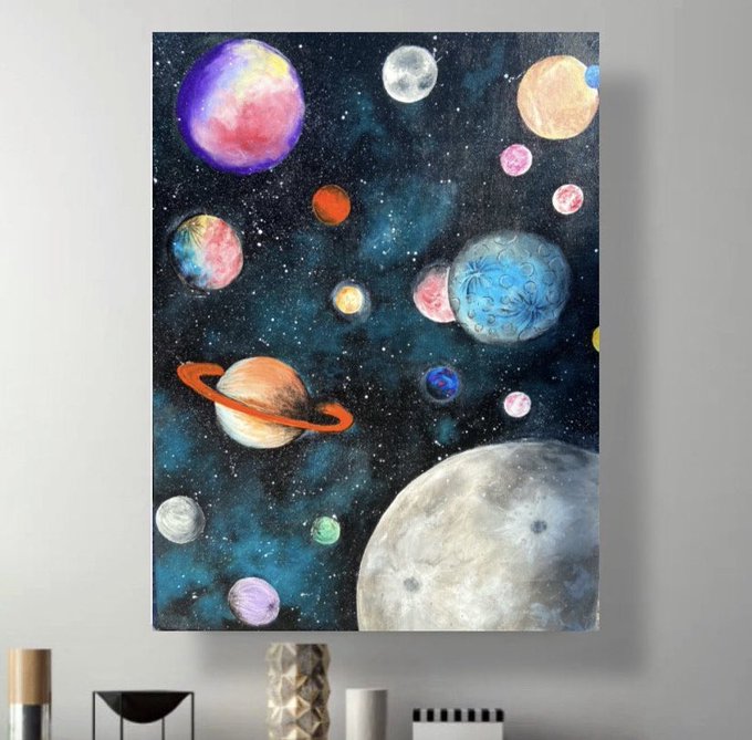 Celestial bodies Canvas size:24”x18” Distanced ,but we share the same sky ❤️So many emotions were poured into making this! #artgallery #art #artist #galaxy #galleryart #gallaxylove #milkyway #love #ArtoftheRogue #artonsale #artistsoninstagram #ArtistOnTwitter @Camlin_Official