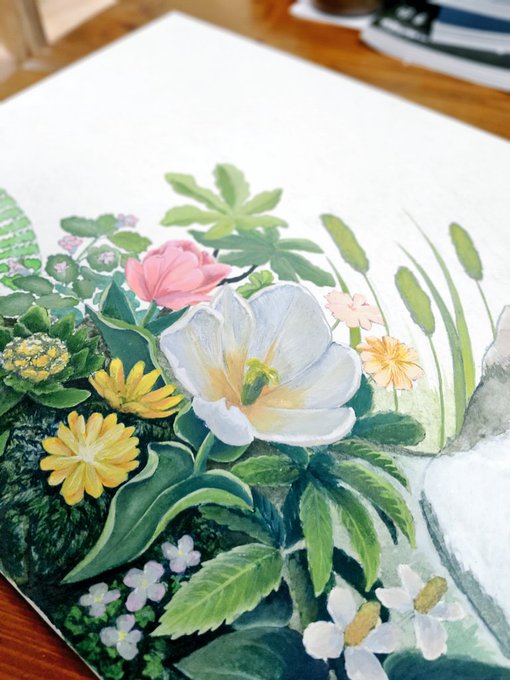 失ったものを忘れることは時に前を向く強さに #制作途中 #art #illustration #artoftheday #art_spotlight #artsanity #drawing #artwork #painting #Contemporaryart #artist #akita #イラスト #アート #絵 #美術 #画家 #絵画 #日本 #猫 #花畑